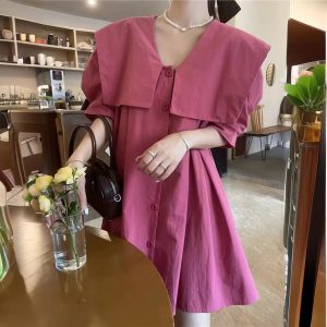 Cotton and linen women’s new double-layer bamboo texture sense round neck loose design women’s bat shirt T-shirt